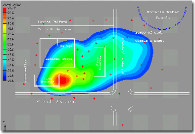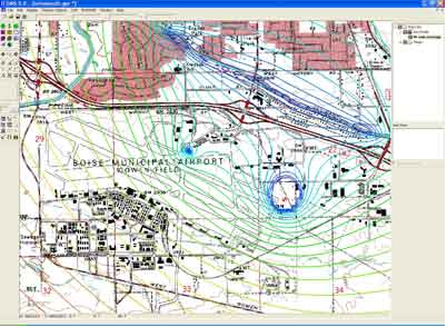 사용자는 지도 모듈을 이용하여 쉽고 빠르게 개념모델을 구축하고 수치모델링을 수행할 수 있습니다. 예를 들어, 대상지역의 항공사진이나 지도를 스캔한 TIFF 이미지, AutoCAD나 MicroStation에서 작성한 DXF 파일 등을 불러들여서 배경화면으로 사용할 수도 있고, 사용자가 해당지역에 점, 다각선, 다각형들을 정의하여 관련된 모델링 자료를 공간적으로 표시할 수 있습니다.
