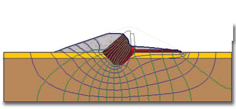 2D Mesh 모듈은 2차원 유한 요소 격자망을 만드는데 사용됩니다. 여러가지 도구들이 자동으로 격자망을 만들고 편집하기 위해서 제공되고 있습니다. 2D 격자는 SEEP2D 모델링에서 사용되며 3D 격자망을 만들 수 있게 합니다. 아래의 그림은 SEEP2D 모델의 예입니다.