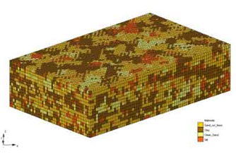 T-PROGS 소프트웨어는 시추 데이터에서 확률적 지압학적 변화를 조사하는데 사용됩니다. T-PROGS 소프트웨어의 결과물은 3D 격자 위에 표시됩니다.