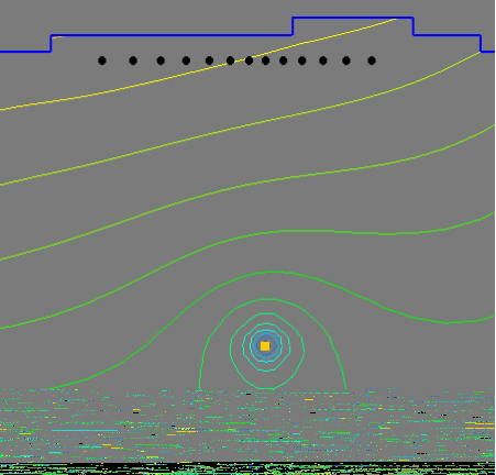 SEEP2D는 복잡한 2차원 침투 문제도 모의할 수 있는데, 모델의 기하학적 형상이 복잡하거나 토양이 비균질적이고 비등방성인 경우에도 가능합니다. SEEP2D는 정상상태 흐름모형으로서 유한요소망의 각각의 절점에서 유속특성을 계산하며, 이 값들을 이용하여 유선 및 등포텐셜선을 도시함으로써 침투망을 결정할 수 있습니다.