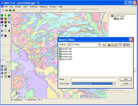 GIS 모듈의 기능을 온전히 활용하기 위해서는 ArcGIS(ArcView) 버전 8.0 이 요구됩니다. 이 경우 ArcGIS의 일부분이 ArcObject 라이브러리를 사용하여 GMS 내부에서 실행됩니다. 이렇게 하여 ArcGIS가 지원하는 어떤 GIS 데이터베이스도 GIS 모듈이 사용할 수 있도록 해 줍니다.
