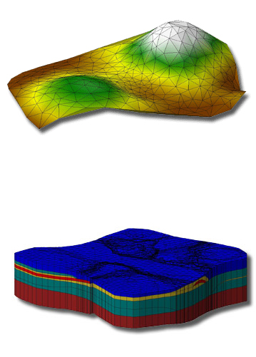 GMS는 복잡한 3D 층위 모델의 생성을 위해, 3D 객체를 유한 차분 그리드 모델이나 유한 요소 메쉬 모델로 직접 전송하는 능력이 있는 진보된 도구들을 가지고 있습니다.