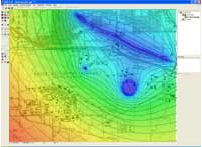 정상상태나 비정상상태의 결과를 애니메이션 형식으로 처리할 수 있는데 벡터도, 등평면도, 컬러 영역도, 등고선도 등 그 종류도 매우 다양합니다. 예를 들어, 비정상상태의 결과를 동영상으로 표현하면 사용자가 수두나 수위 저하, 유속, 오염물의 농도 등이 시간에 따라 어떻게 변화하는지 쉽게 알아볼 수 있을 것입니다.