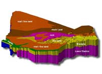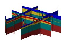 GMS 의 Solid 모듈은 입체를 이용한 층위의 3차원 모델을 만들어 냅니다. 이와같이 만들어진 모델의 단면은 어느면을 잘라내어도 됩니다. 그리고 이 입체 모델은 실재적인 이미지를 만들어 내기 위해 숨겨질 수 있습니다. 입체를 만들기 위한 새로운 "Horizons Method" 도구는 입체를 빠르고 정확하게 만들기 위한 가장 유용한 도구입니다.