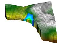 2차원 혹은 3차원 x-y-z 측량 자료를 과업 지역 내 전 지점에 대해서 얻을 수는 없기 때문에 자료들을 보간하여 사용할 필요가 있는 것입니다. 지질 통계학 모듈은 kriging 기법을 비롯하여 여러 가지 다른 보간 기법을 지원하는데, 이를 이용하면 기존의 측량자료를 모형 입력자료로 변환할 수 있습니다.